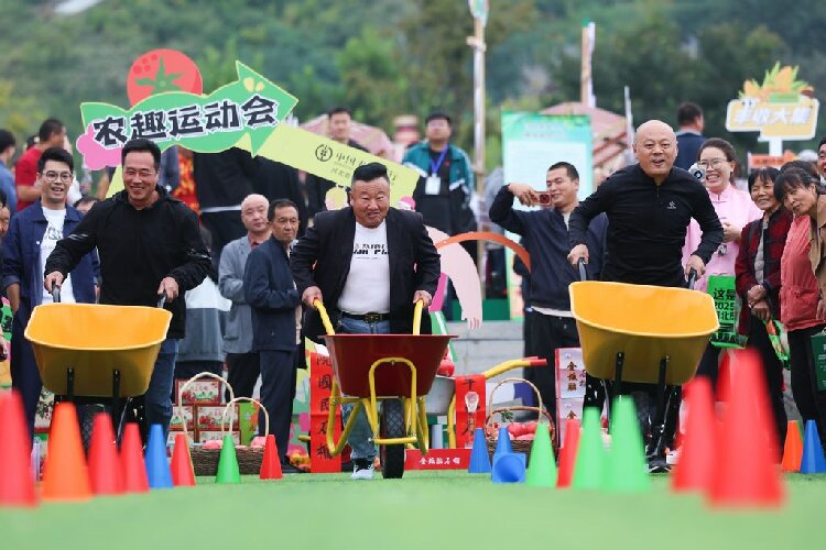 9月23日,在河北省元氏县封龙书院,人们在庆祝活动中参加农趣运动会。新华社发