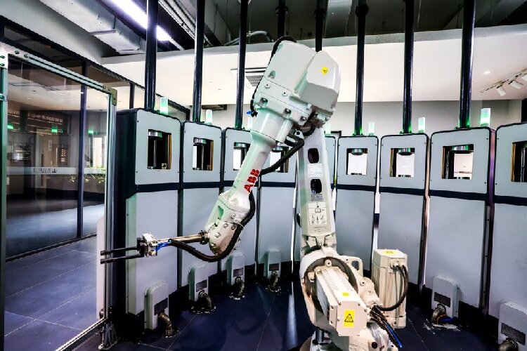10月17日,天柱钢铁技术中心铁钢智能检测室内的机器人。 天柱钢铁供图