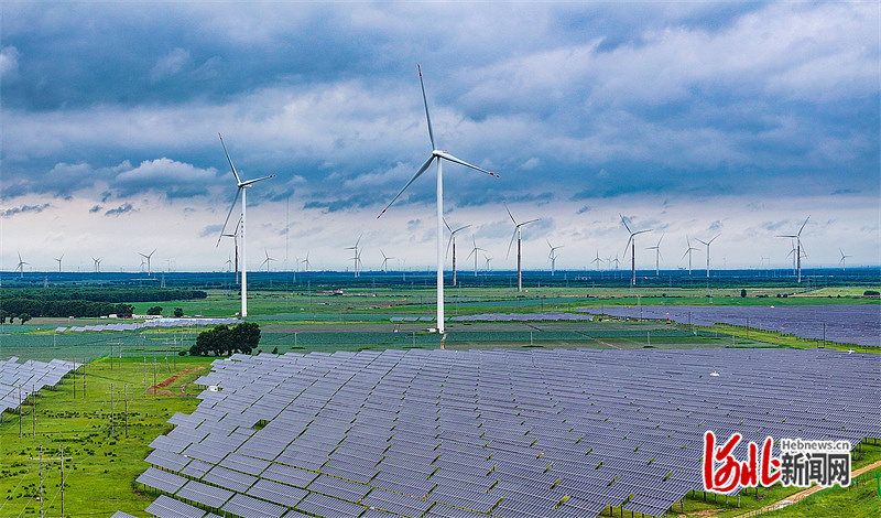 2025年7月8日,无人机航拍的位于张北县的风光电设施。河北日报记者 耿辉摄