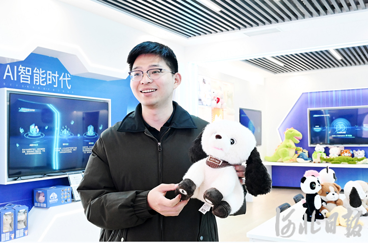 “这是我们自主研发的AI互动玩具,内置语音识别与情感计算模块,是传统毛绒玩具与人工智能技术深度融合的产物。”海发玩具总经理张龙飞手托产品,言语间满是自豪。“传统毛绒玩具利润薄、竞争激烈,但加上‘智能芯’,产品附加值翻了几倍。今年,我们凭此成功打开了墨西哥市场。”他说。