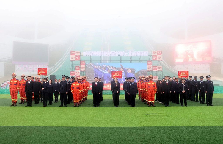 在雪如意主会场,群众在签名墙上郑重签名,并按下“京津冀国安守护者”按钮,表达维护国家安全的坚定决心。现场还设置河北省国家安全形象IP“子龙”“翼宝”人偶互动、国安主题寻宝闯关等活动,并轮播国家安全主题宣传视频。来自三地的公安、消防、法院、检察院队伍组成方阵,联合展示了守护国家安全的坚毅风采。