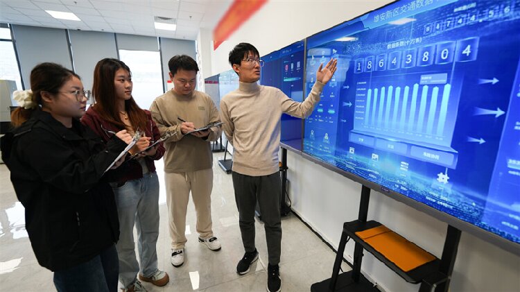 10月28日,在中国电信智慧城市产业园容东数字道路智慧运营中心,工作人员在分析雄安新区交通数据中台的系统数据。 河北日报见习记者 李 畅摄
