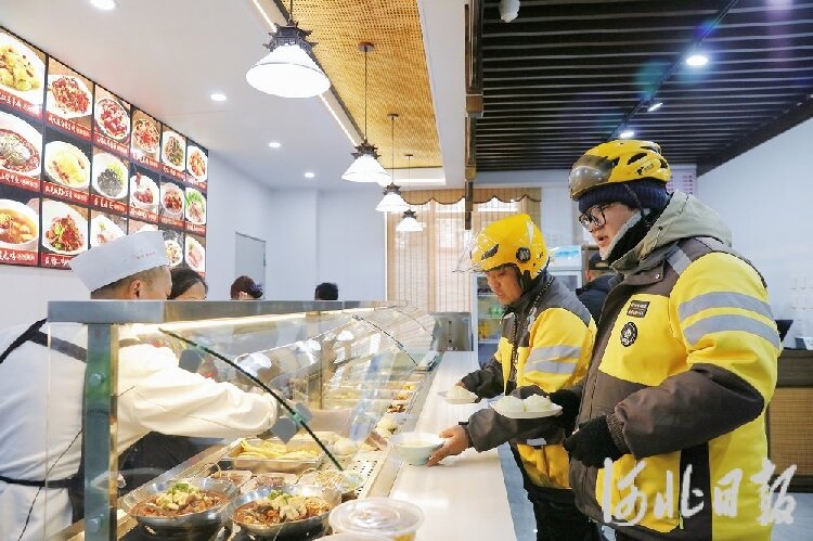 接过饭菜,两人吃得格外香。“干我们这行,吃饭从来没准点儿。‘暖新食堂’随时都有热饭热菜,还给我们打折优惠,真是贴心。”薛明笑着说。