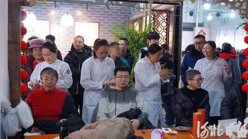 在“康·节气”板块国医堂,玉田县中医医院的医师们带来耳穴压豆、艾灸、推拿及中药代茶饮等特色服务,为市民健康把脉。
