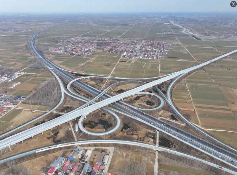 1月19日拍摄的京港澳高速跨曲港高速枢纽互通(无人机照片)。新华社发