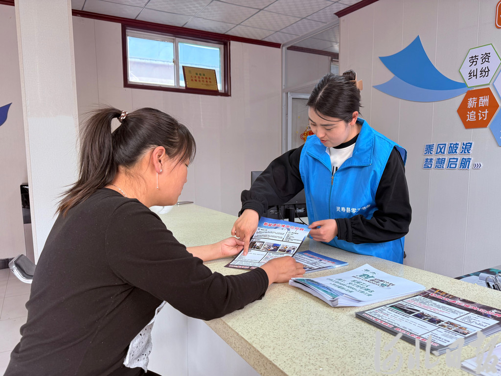 3月17日,石家庄市灵寿县零工市场内,工作人员正在向求职者推荐岗位。河北日报见习记者侯淼摄