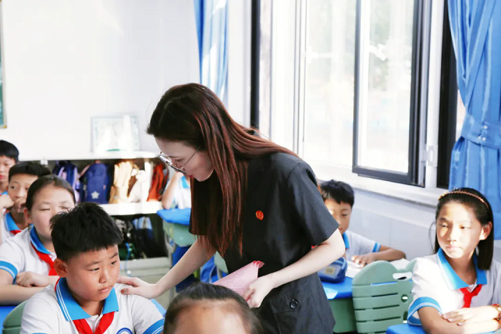 “同学们,你们知道什么是法吗?法律和我们有什么关系呢?”伴随着周冬雪亲切的开场,同学们迅速被带入了法律的奇妙世界。针对小学生的年龄特点,周冬雪重点讲解了《中华人民共和国未成年人保护法》的相关内容,让同学们了解法律如何为未成年人的健康成长保驾护航。从家庭保护、学校保护、社会保护、网络保护、政府保护和司法保护,她通过一个个生动案例,让同学们明白自己享有哪些权利,当权利受到侵害时应该如何寻求帮助。