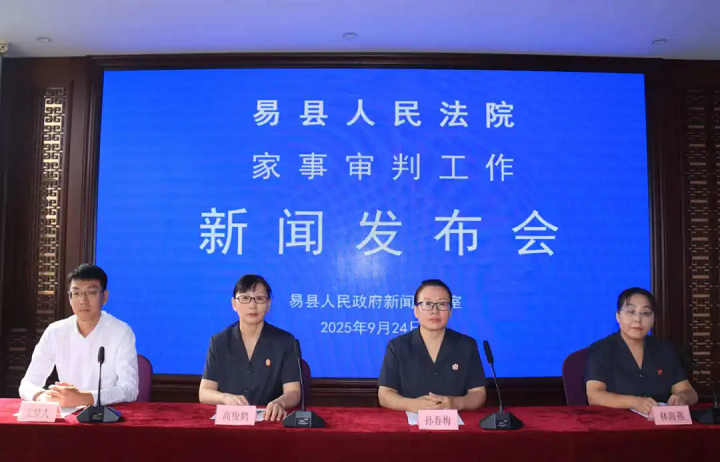 9月24日,易县法院举办家事审判工作新闻发布会。县委宣传部新闻宣传股股长孙森主持发布会,法院党组成员、副院长孙春梅,紫荆关法庭庭长高俊鹤,管头法庭庭长林海燕出席发布会,现场回应媒体记者提问,部分媒体记者和群众代表受邀参会。