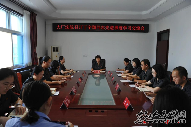 燕赵人民代表网讯(李强)为进一步弘扬英模精神,充分发挥先进典型的示范引领作用,9月29日,河北大厂法院组织青年干警专题开展丁宇翔同志先进事迹学习交流会,引导青年干警以先进为标杆,强化责任担当,积极履职作为,进一步提升司法为民的服务水平。