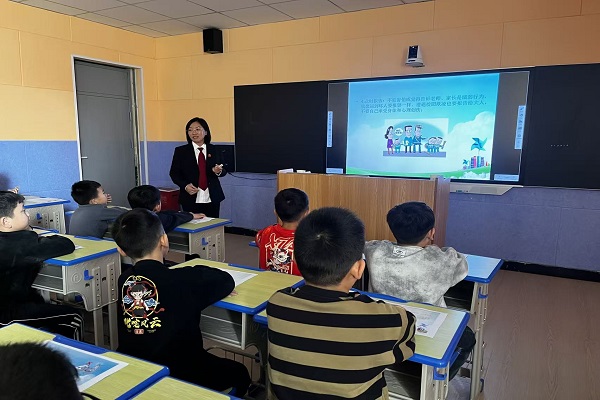 讲座中,文安法院左各庄法庭干警结合《中华人民共和国预防未成年人犯罪法》《中华人民共和国未成年人保护法》等法律法规,针对小学生认知特点,摒弃生硬说教,精心筛选校园及周边发生的真实案例,将抽象法律条文转化为生动易懂的“成长指南”。通过鲜活的案例和通俗的语言,层层剖析法律知识,用提问互动的方式引导学生主动思考,通过向学生们发放了预防校园欺凌及防范电信诈骗普法宣传手册,鼓励大家课余时间积极学习法律知识,让法治课堂既有“干货”又有“温度”,为孩子们的心中播下知法、懂法、守法的种子。