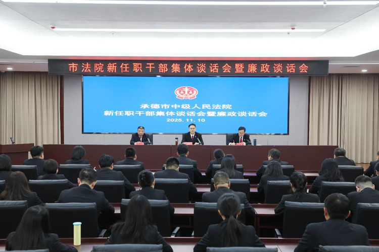 11月10日,承德中院对新任职干部进行集体谈话。党组书记、代院长王辉出席会议并讲话。党组成员、政治部主任谢孟水主持会议并宣布任免职决定。党组成员、驻市中院纪检监察组组长王剑锋对新任职人员进行了任前廉政谈话。4名新任职干警代表结合工作实际发言。