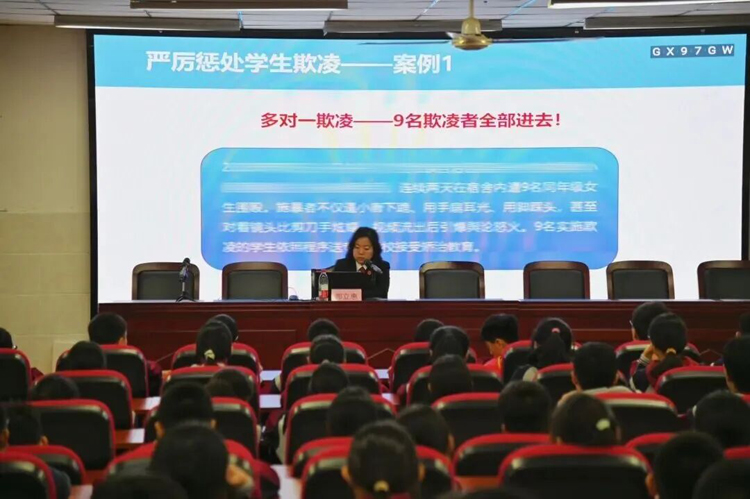 授课中,郎立惠围绕“防治学生欺凌”主题,以通俗易懂的语言讲解了校园欺凌的表现形式、危害后果及法律责任。“遇到校园欺凌怎么办?”这是学生们最为关心的问题。郎立惠运用审判实践中的典型案例,为同学们详细了应对校园欺凌的具体方法。她强调,遇到校园欺凌,首先要保持冷静,避免矛盾升级,保护好自己。然后要想办法尽快离开现场,到更加安全的场所并及时寻求老师或家长的保护帮助。关于“如何防治校园欺凌?”,郎立惠引导同学们要及早认识法律红线与责任边界,实施欺凌行为不仅会伤害他人,自己也可能面临民事、行政乃至刑事处罚。从欺凌者角度,要善于控制自己的情绪,学会换位思考,建立和谐友善的同学关系。从被欺凌者角度,发现欺凌苗头要勇敢说不、及时寻求帮助,不纵容欺凌行为的发生或者持续。
