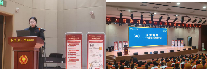 为进一步弘扬宪法精神、筑牢青少年法治信仰,正定法院刑事审判庭一级法官燕石、民事审判庭三级法官于二俊走进石家庄一中雅郡校区,为约600多名学生带来了一堂生动而深刻的法治教育课。