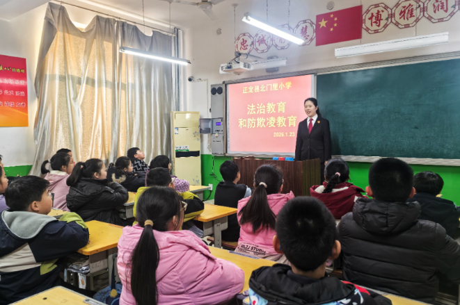为加强未成年人法治教育,预防违法犯罪,筑牢校园安全防线,近日,正定县人民法院自由贸易试验区人民法庭二级法官赵丹以法治副校长的身份,走进正定县北门里小学,为该校学生带来了一堂生动深刻的法治教育课。