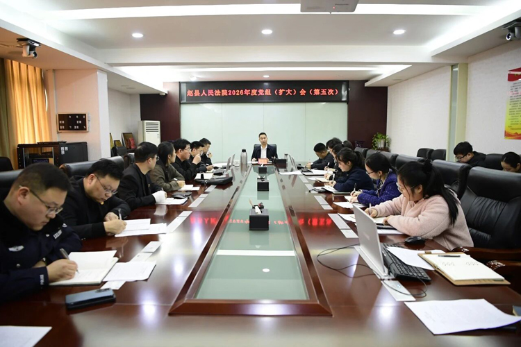 为推动全体干警迅速调整状态、收拢心思、进入角色,2月25日,赵县法院党组书记、院长范崇主持召开党组(扩大)会,旨在凝聚思想共识、部署重点工作、明晰发展路径,为全年工作高质量发展定方向、明任务、鼓干劲。全体班子成员和中层副职以上干警参加会议。