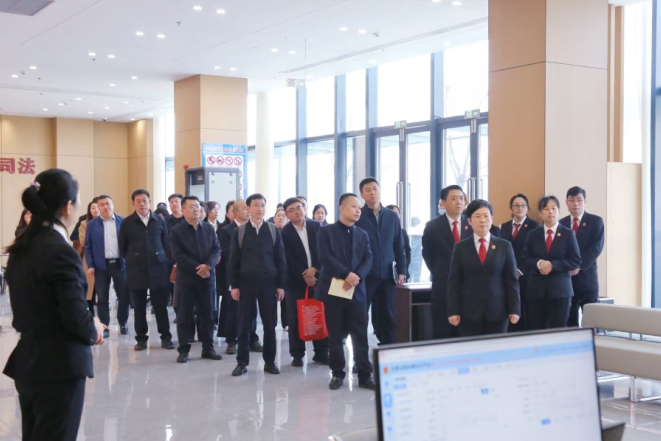 在正定法院工作人员的引导下,代表们实地参观了自贸区人民法庭,了解了自贸区法庭的基本概况、履职成效、特色工作以及法庭在服务自贸区发展建设,维护健康公平金融秩序、优化法治化营商环境,服务县域经济高质量发展中的重要作用。通过开放、透明的展示和讲解,代表们“零距离”见证了法院如何履职、法官如何办案、正义如何实现,深刻体会到“阳光司法、透明司法、为民司法”的实践内涵。法律不再遥远,法治变得可触可感,司法为民的温度与公正司法的力量在参观交流中生动传递。