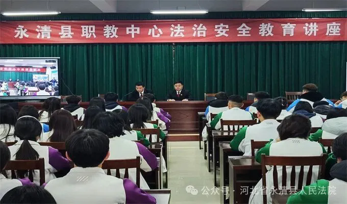 为切实加强未成年人犯罪预防工作,提升青少年法治意识和自我保护能力,2026年1月15日,永清法院别古庄法庭干警孙钰钧、陈铖到永清县职教中心和别古庄镇中学开展法治安全教育讲座。