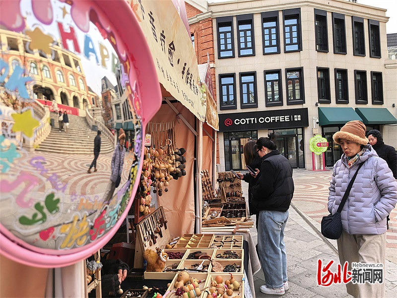 1月17日,游客在唐山市培仁历史文化街手工艺品摊位前选购商品。河北日报记者王育民摄