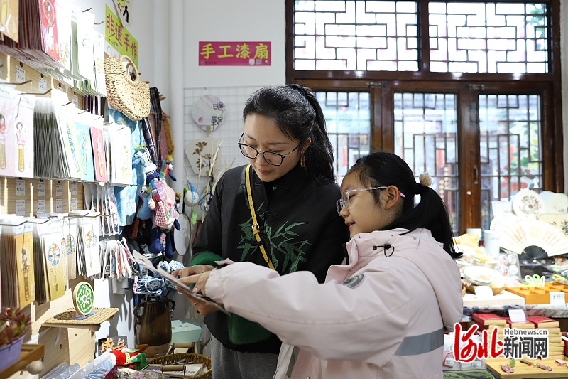2月18日,游客在“邯”城“郸”礼文创店选购文创产品。河北日报记者 刘剑英摄