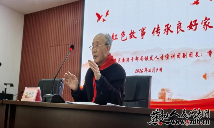 随后,曹成群深情讲述了抗日英雄杨靖宇的事迹,并着重介绍了英雄后代的红色家风。这个家庭被评为全国最美家庭、全国文明家庭。他的后代传承了英雄精神,立下“严要求、重责任、懂知足”的九字家风。曹成群还分享了家乡鹿泉的榜样:银发人才宣讲团成员李春义受父母勤劳节俭的家风影响,退休后编纂地方志、宣讲“四史”;银发人才宣讲团成员张良占家庭在父母“好好读书”的家教下,弟妹扎根西藏,儿子参军报国。这些身边的事迹让学生们真切感受到,良好家风人人可学。