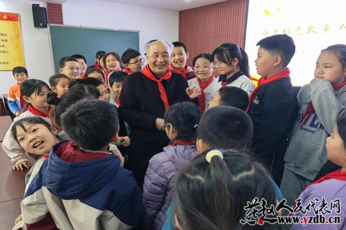 宣讲后,曹成群走到学生中间,与孩子们亲近交流,大手拉小手,传承好家风,他耐心回答学生们提出的问题,现场气氛温馨而热烈,将活动推向了高潮。他深情寄语全体学生:走进历史是为了走向未来。希望大家从红色故事和优良家风中汲取力量,珍惜幸福生活,厚植家国情怀,争做爱党爱国、全面发展的新时代好少年。