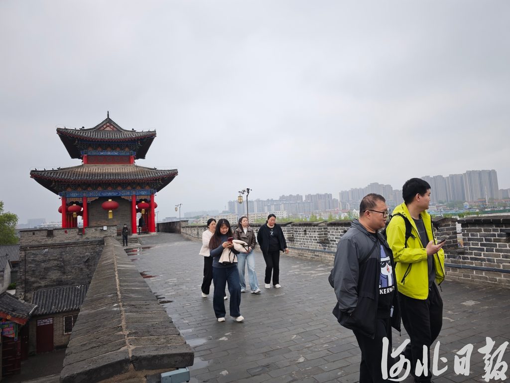 4月9日,游人在邯郸大名古城城墙上参观游览。河北日报记者刘萍摄