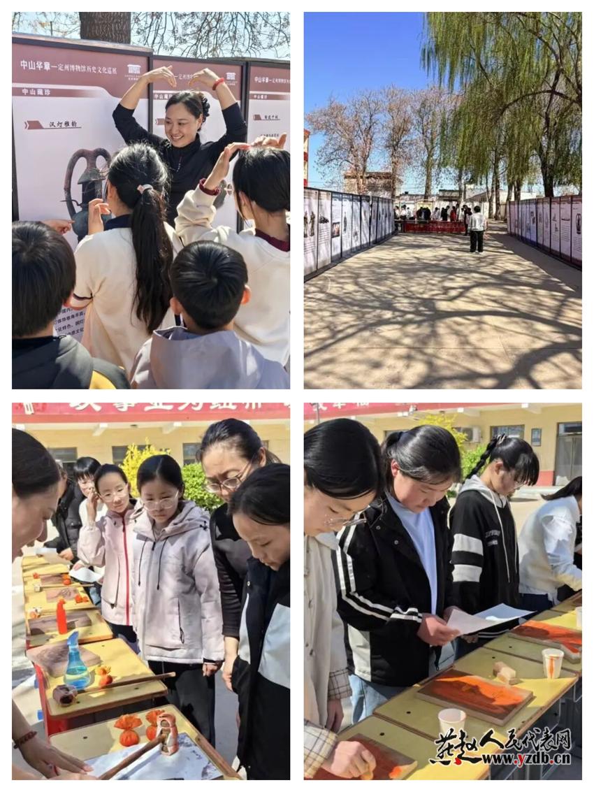 本次活动设置三大特色环节,旨在让历史可感、文化可触。活动精心打造主题文化展板,聚焦定州中山国历史、地域文化与民族交融故事,让同学们足不出校即可品读家乡历史、感受深厚文化底蕴。讲解员走进课堂,用生动语言讲述“汉代环保灯”等文物故事,让文物“活起来”,把趣味历史课堂变成同学们了解家乡文化的重要窗口。此外,手工拓印体验活动,让同学们亲手操作、亲身实践,在动手过程中感受传统技艺与传统文化的独特魅力。