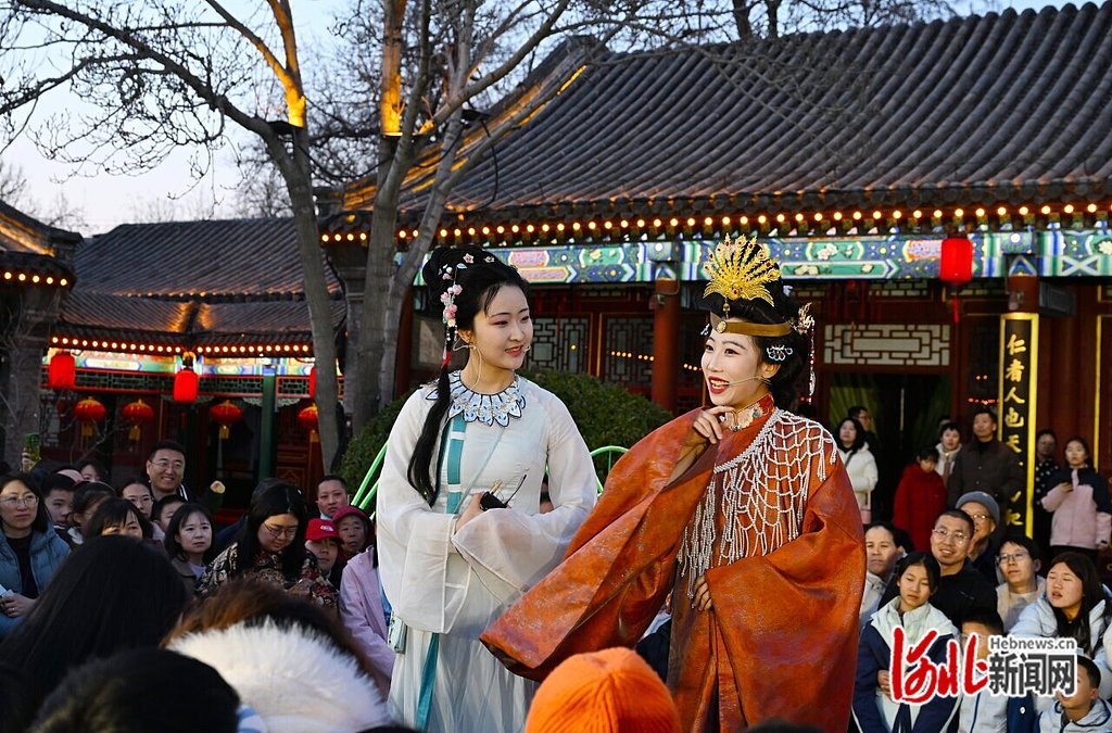 2月17日,游客在正定荣国府景区观看“一梦入红楼”夜游演出。(河北日报资料片)河北日报记者 史晟全摄