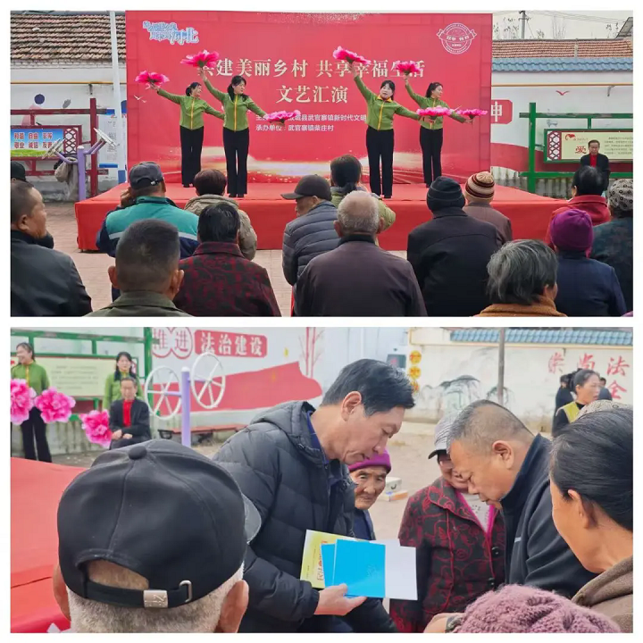 为进一步提高群众的法律意识和法治素养,助力乡村基层依法治理,11月12日,故城县司法局巧借镇文艺汇演契机,联合武官寨司法所在柴庄村开展“普法宣传进乡村·法治阳光暖民心”主题普法宣传活动,将法律知识以群众喜闻乐见的形式送到百姓身边。