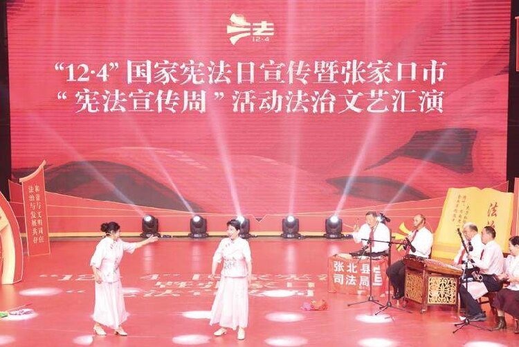 图为二人台普法节目亮相张家口市“宪法宣传周”启动仪式。 (资料图片)