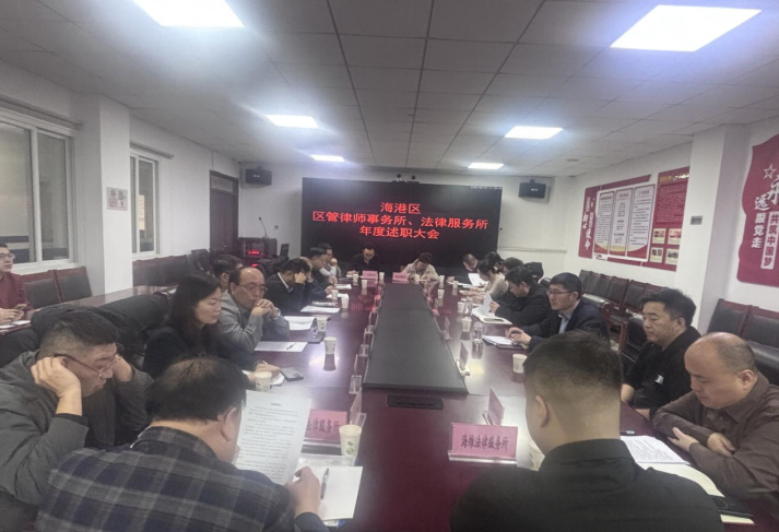 为全面总结2025年度全区法律服务行业工作成效,规范执业管理,压实主体责任,提升法律服务质效,2026年2月4日上午,在海港区司法局三楼会议室组织召开区管律师事务所、法律服务所年度述职大会。区司法局党组书记、局长任德文、区司法局党组成员、副局长刘铭、一级主任科员张娜、法律服务中心及法律援助工作人员、各律师事务所、法律服务所主任参加此次会议。