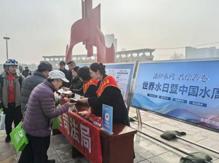 为深入落实《法治宣传教育法》,3月22日上午,秦皇岛市海港区司法局组织“润心”法律志愿者服务队、法律顾问、法律明白人,在人民广场开展以“法护水网•共绘画卷”为主题的普法宣传活动,引导群众尊法、学法、守法、用法。