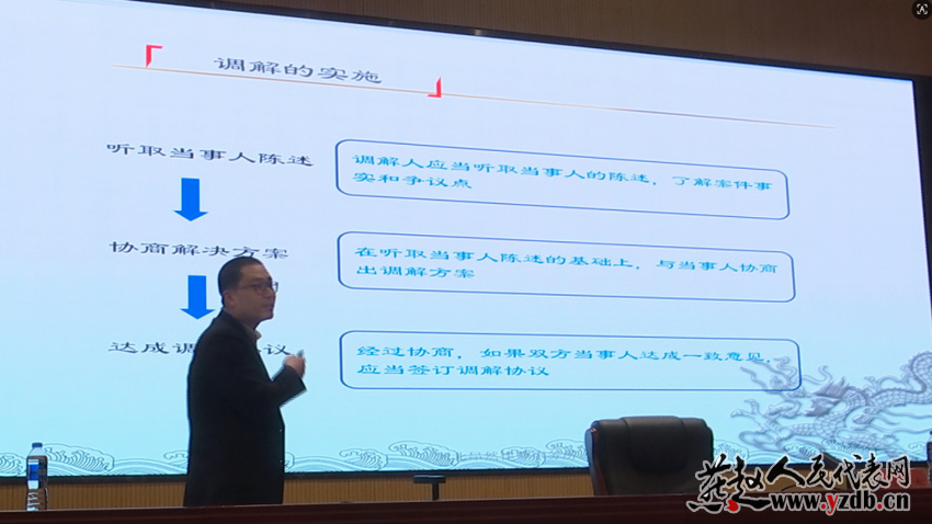 培训现场,崔冬律师紧扣基层调解工作痛点、难点,以 “以案释法”为核心模式展开授课。他结合婚姻家庭、邻里地界、劳务欠薪等群众身边高频纠纷典型案例,用“乡音土话”解读专业法律条文,将复杂法理转化为易懂的实操方法,细致讲解不同类型纠纷的调解思路、沟通技巧与法律适用要点,传授 “面对面协商、背对背疏导”等实战妙招让参训人员听得懂、学得会、用得上。