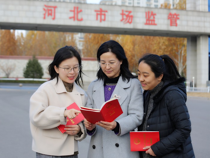 在全国第六个宪法宣传周期间,河北省产品质量监督检验研究院通过多种形式组织宪法学习,引导职工加强自身法治修养,树强“尊法、学法、守法、用法”的人生观,以此推动质量检验工作高质量发展。图为该院职工在工作之余交流学习宪法的心得体会。