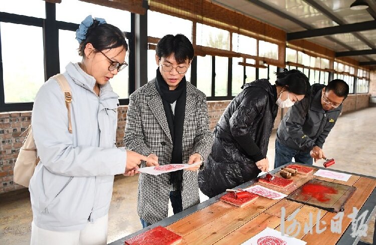10月22日,在保定市华融纸厂,参观者体验版画制作。河北日报记者寇国莹摄