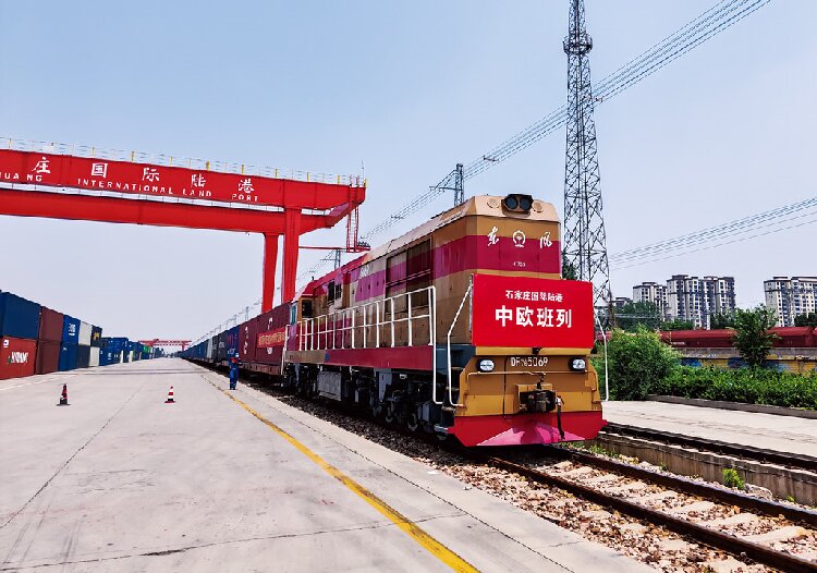目前,石家庄国际陆港已构建起“四向十口岸”国际物流大通道,开通18条国际运输干线,辐射范围覆盖亚欧大陆50多个国家和地区,有力保障了国际经贸产业链供应链稳定,为区域经济高质量发展提供了有力支撑。