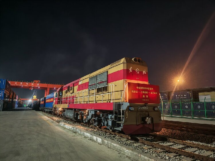 12月5日凌晨,京津冀首列全程时刻表中欧班列从石家庄国际陆港驶出。余陈军摄