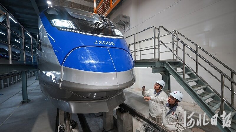 带着这份期待,近日,记者走进位于雄安新区的京雄快线车辆基地静调库,只见两列崭新的列车静静停靠在轨道上。