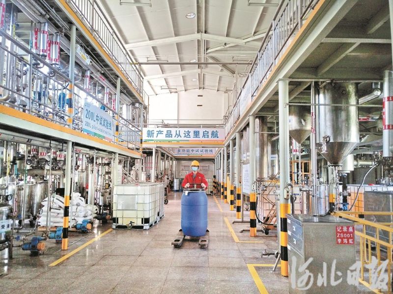 位于曲周县的晨光生物科技集团股份有限公司中试中心内,工作人员正在运送半成品原料。河北日报资料片