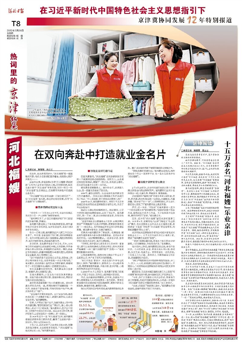近些年,在京津居民家中,“河北福嫂”是一道温暖的风景:有的为母婴调配营养餐食,有的悉心照护失能老人……