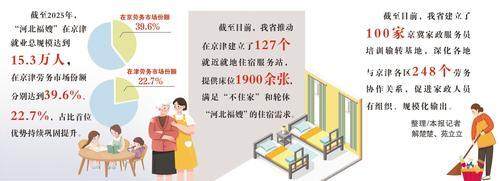 毗邻京津大都市,河北劳务输出打开了广阔市场。2025年,“河北福嫂”在京津就业总规模达到15.3万人,在京津劳务市场份额分别达到39.6%、22.7%,占比首位优势持续巩固提升。