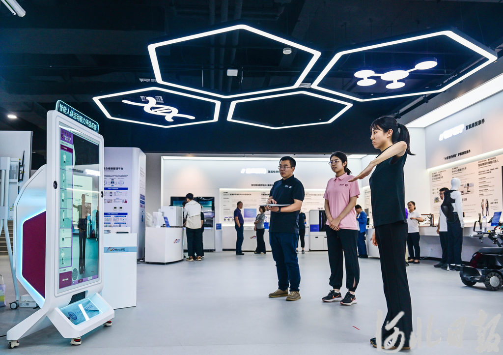 2025年6月8日,雄安未来之城场景汇科创园二楼体验中心,工作人员在调试智能人体运动能力评估系统。河北日报记者李东宇摄