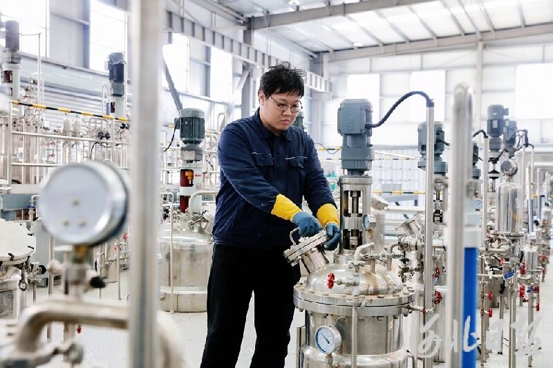 3月12日,在唐山市生物制造生物质转化中试平台,工作人员正在查看设备状态。河北日报记者师源摄
