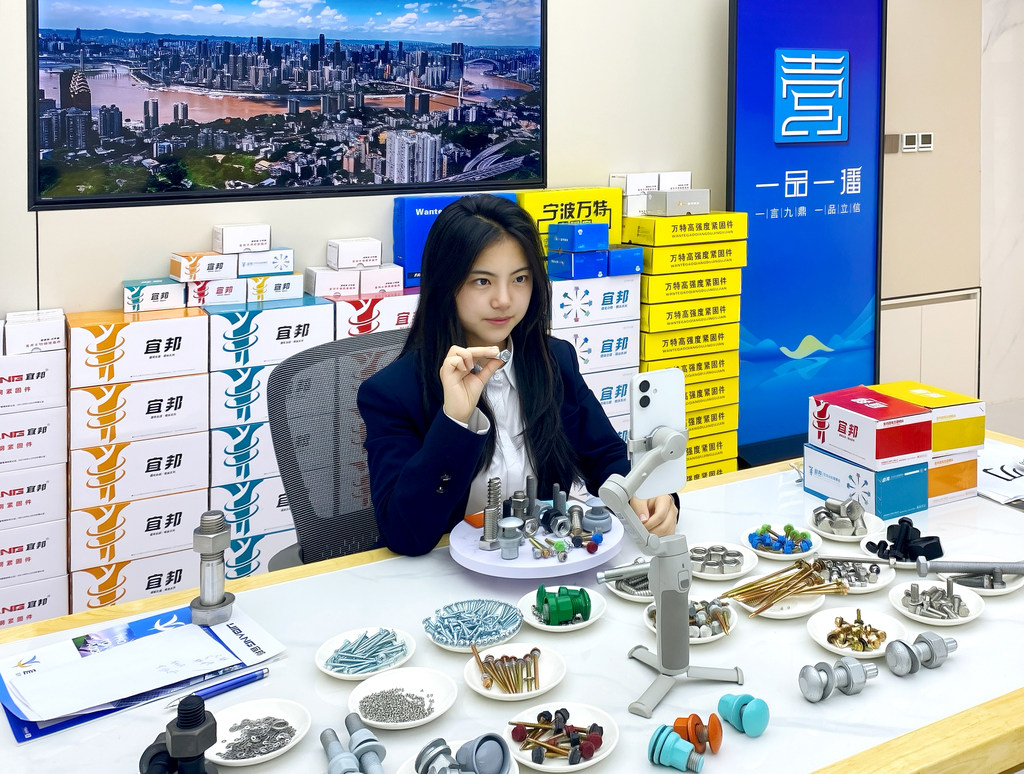 “紧固件产品品类繁多,有的中小企业仅生产其中几种型号,搞直播都凑不齐货。而我们的直播间就像大超市,粉丝给我们下单,我们向集群内企业采购,帮助他们实现了两颗长尾钉也能起卖的小单化、高价化运营。”宜邦机械董事长杨建辉说。