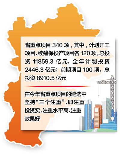 今年是全面落实省第九次党代会精神的开局之年,也是供给侧结构性改革的深化之年。我省以项目建设为抓手,着力扩大有效投资,进一步推进供给侧结构性改革。省发改委副主任宋立民介绍,在今年省重点项目的遴选中,他们坚持了“三个注重、三个优先”。“三个注重”就是注重投资实,注重水平高,注重效果好;“三个优先”就是优先安排列入《京津冀协同发展规划纲要》、国家和省“十三五”规划纲要及专项规划的重大项目,优先安排央企入冀、民企入冀及重大项目产学研对接活动签约的重大项目,优先安排保民生惠民生项目、国家专项建设基金支持项目和采用PPP等新机制、新模式的重大项目。