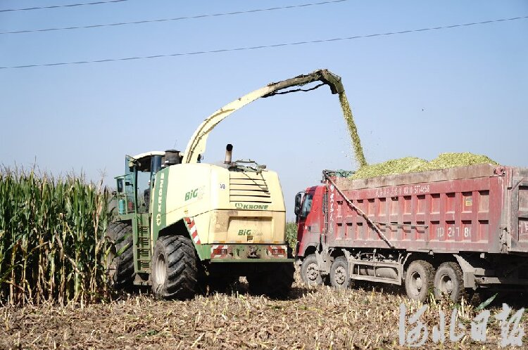 近日,玉米青贮收割机在邢台经济开发区林义农业种植专业合作社收割玉米。李院红摄