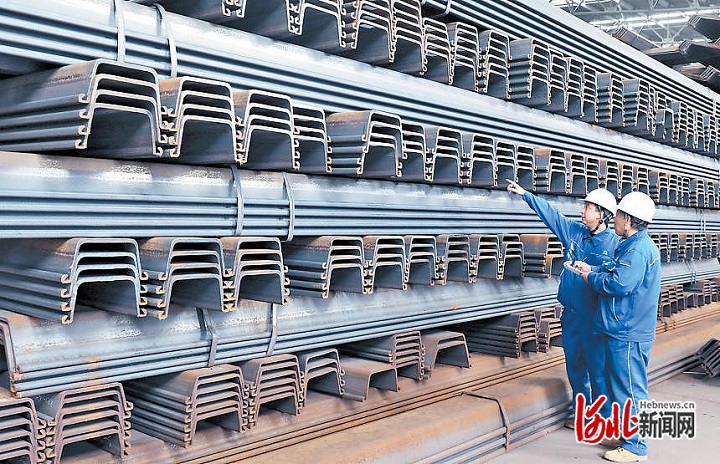 9月2日,河北津西钢铁集团股份有限公司型钢二厂钢板桩生产车间,员工正在检测钢板桩产品。 河北日报记者 李巍摄