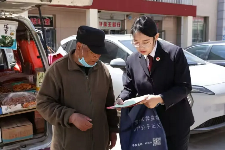 10月22日,北戴河区人民检察院组织干警走进石塘路市场,开展知识产权普法宣传活动。