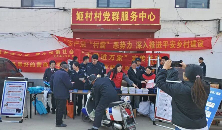 活动当天,干警们在姬村村委会门口设立了集中宣传点,通过悬挂条幅、摆放展板、发放宣传资料等多种形式,用通俗易懂的语言向村民讲解防范电信网络诈骗、未成年人保护、民法典等与生活密切相关的法律知识。