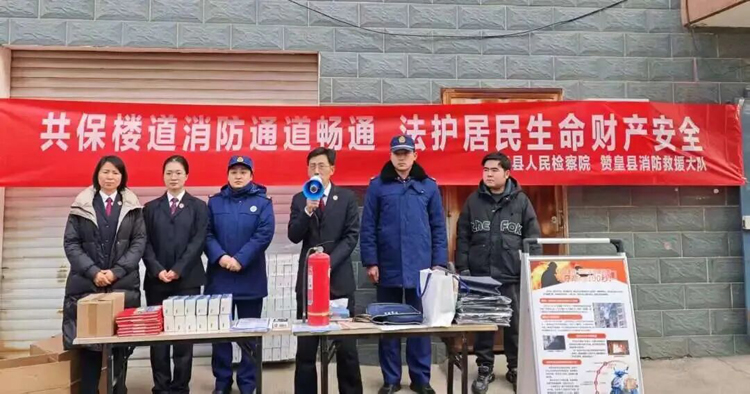 1月16日,赞皇县检察院与县委宣传部、县消防救援大队、三里桥社区共同走进南海苑小区,开展“共保楼道消防通道畅通,法护居民生命财产安全”主题法治宣传活动,采用“现场宣讲+入户走访”形式,将安全知识和法治保障直接送到群众家门口。